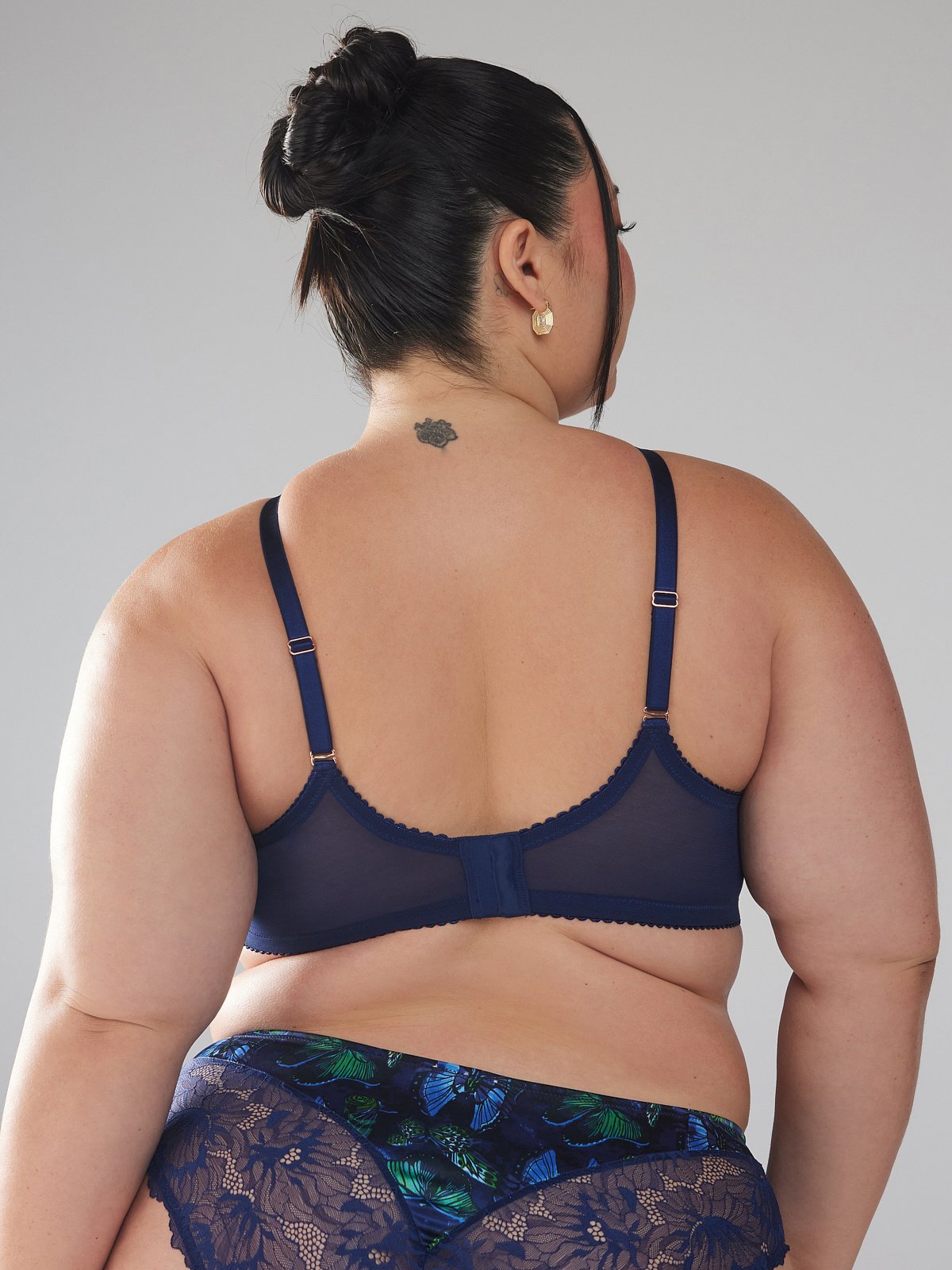 Enter your new element with our Baroque Butterfly Lace Quarter-Cup Bra, featuring a padded quarter cup with an unlined, lace top cup, a satin body, and a halter neckline with adjustable, supportive straps that cross in front and back.