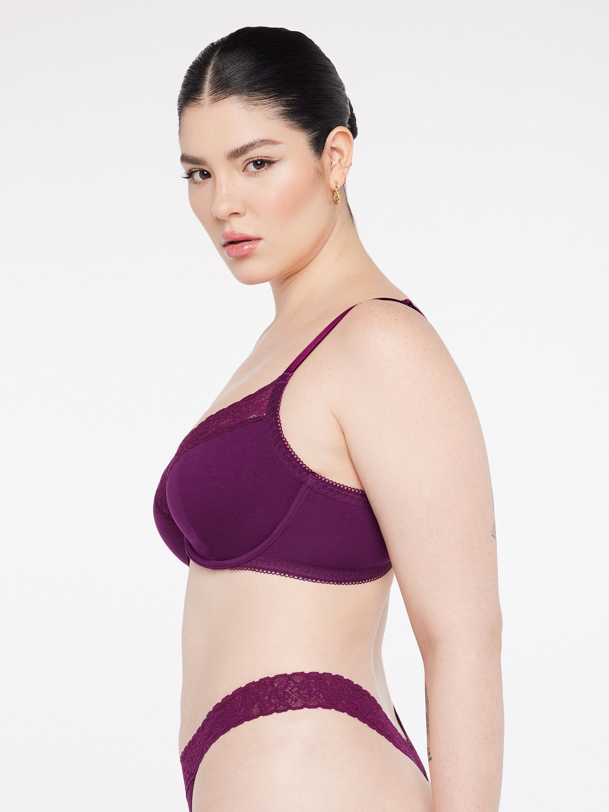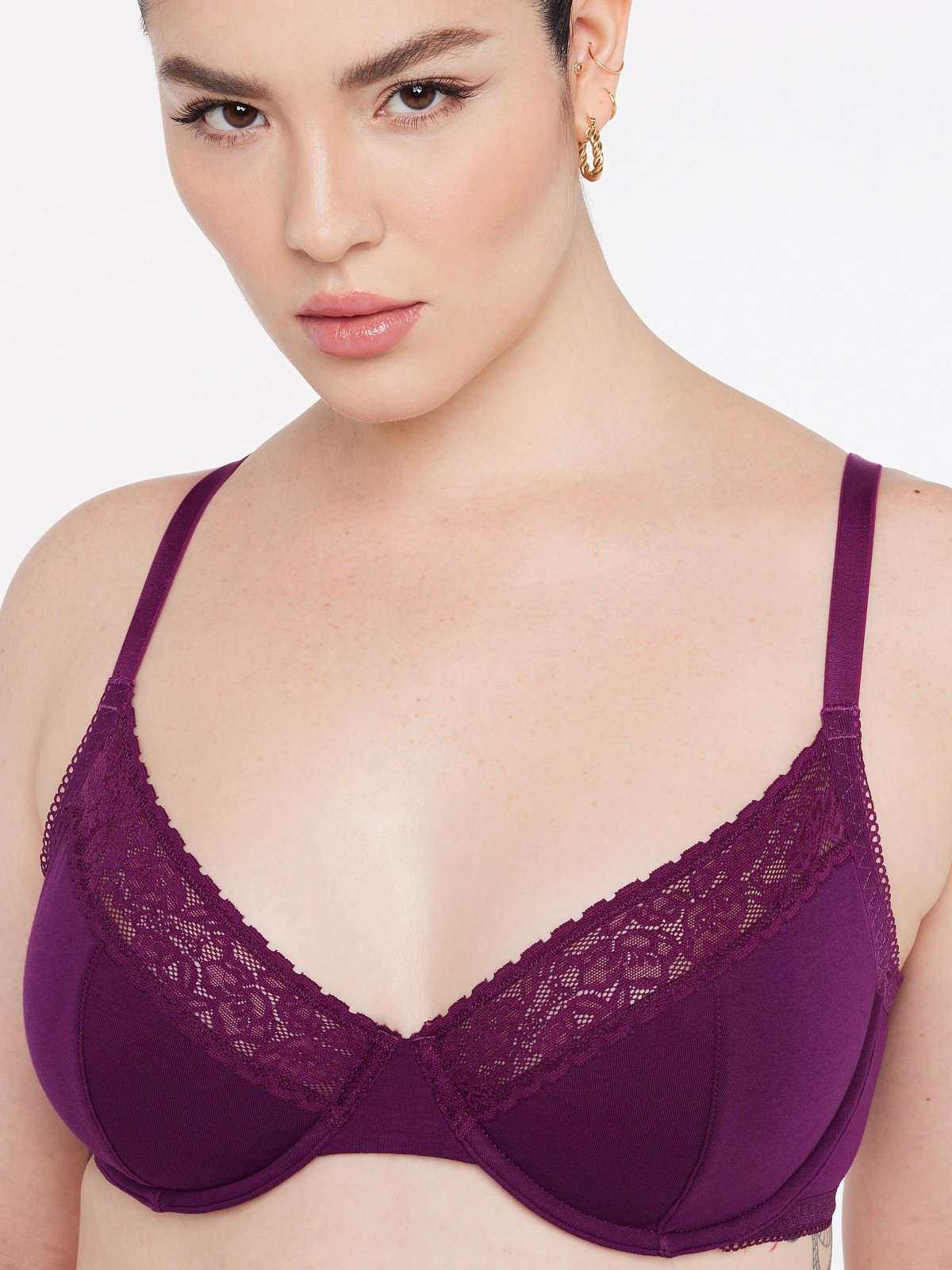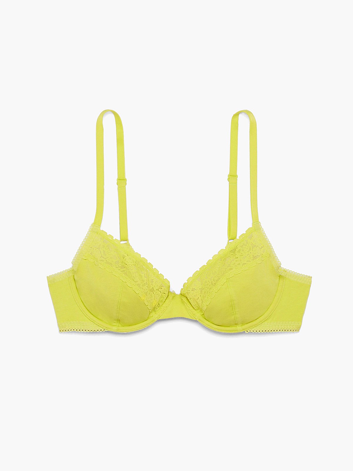 The Cotton Essentials Lace-Trim Unlined Bra is an everyday essential featuring a 2-layer front for support and delicate logo lace trim.