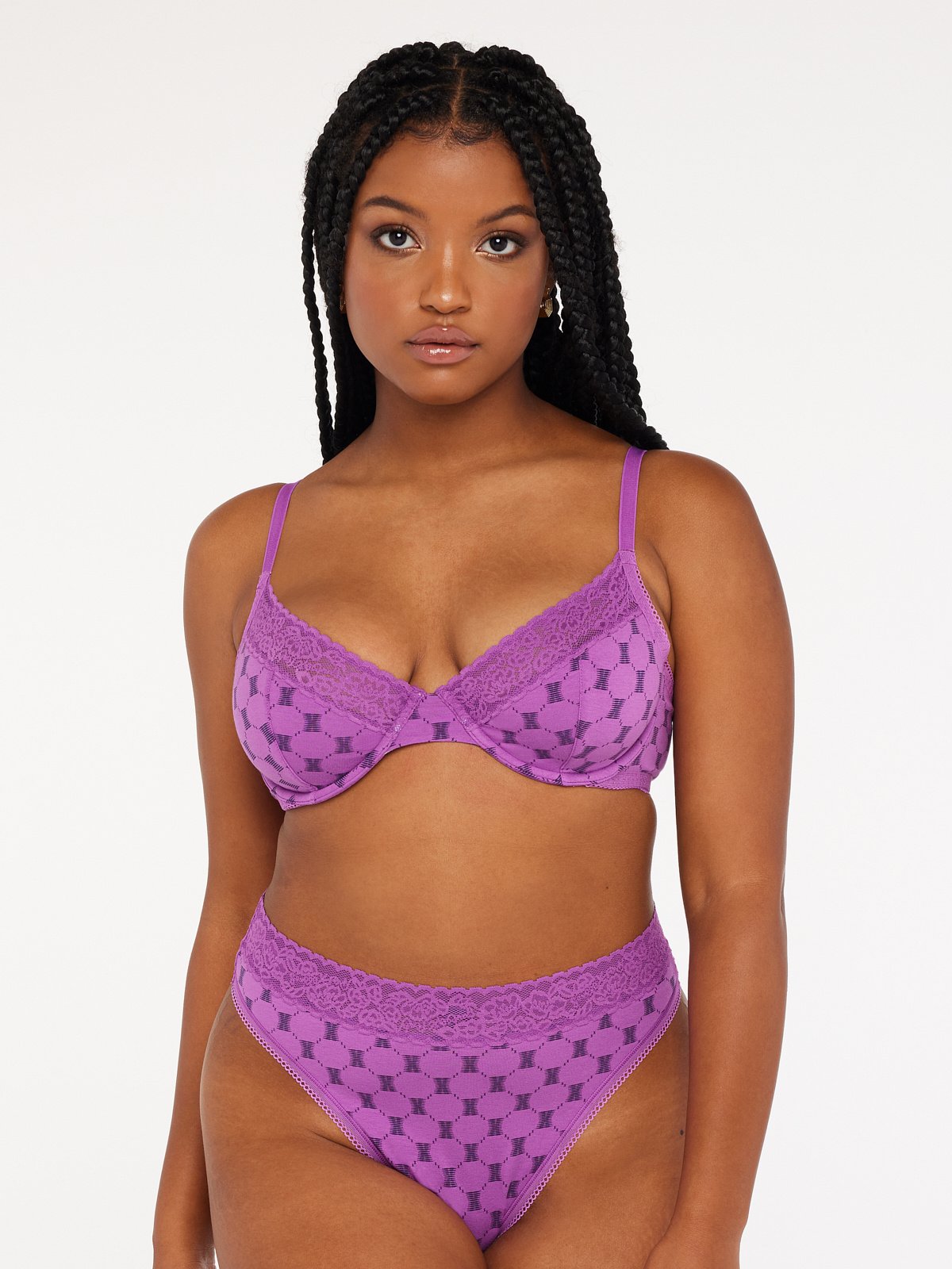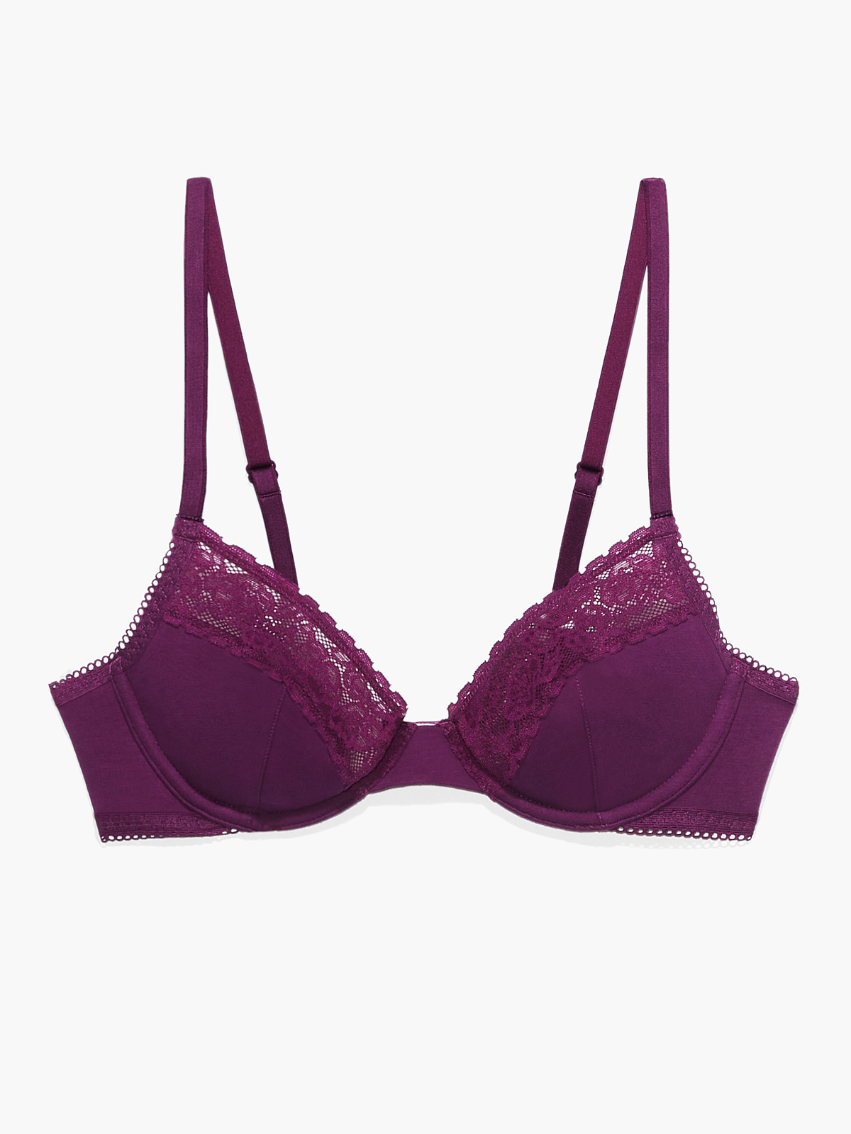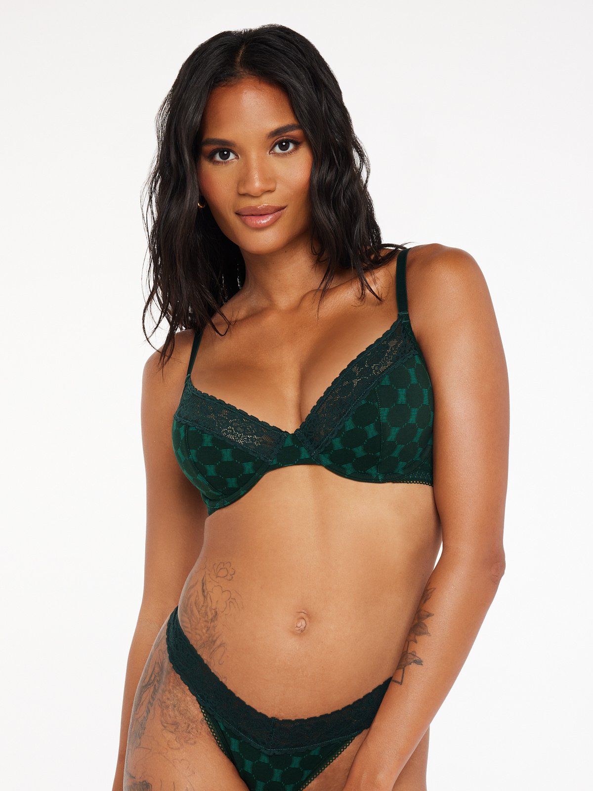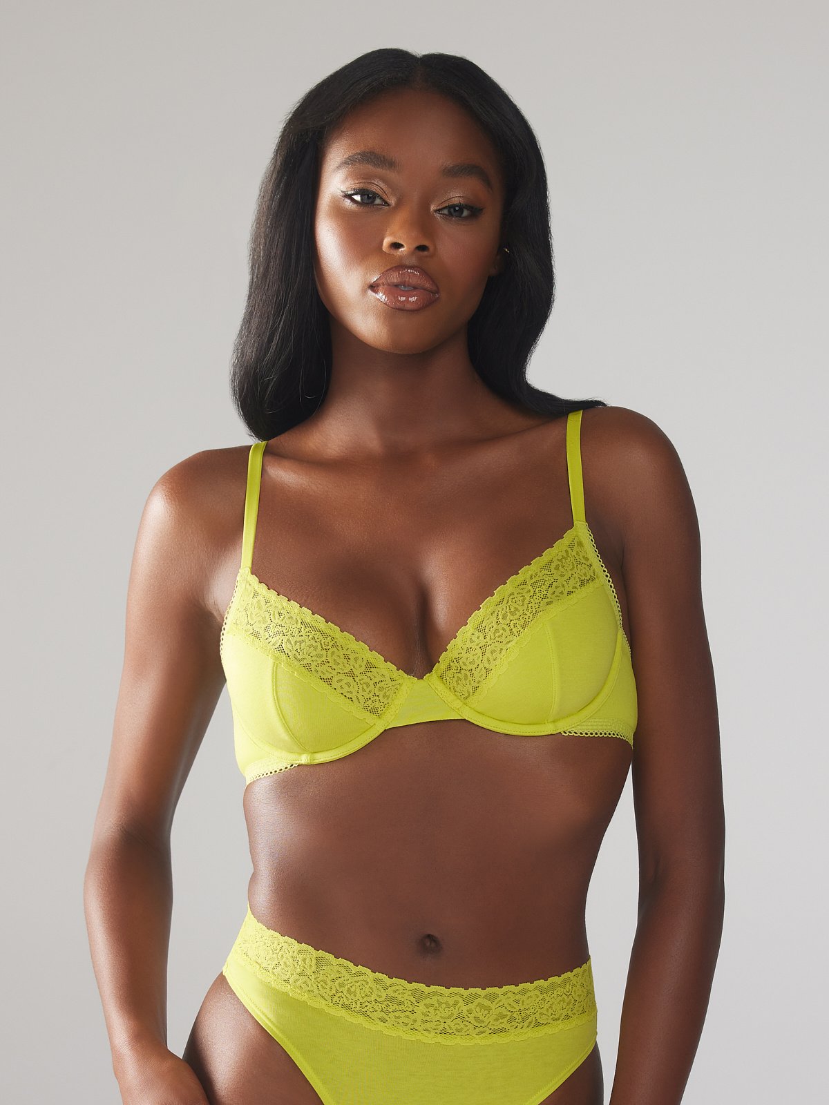 The Cotton Essentials Lace-Trim Unlined Bra is an everyday essential featuring a 2-layer front for support and delicate logo lace trim.