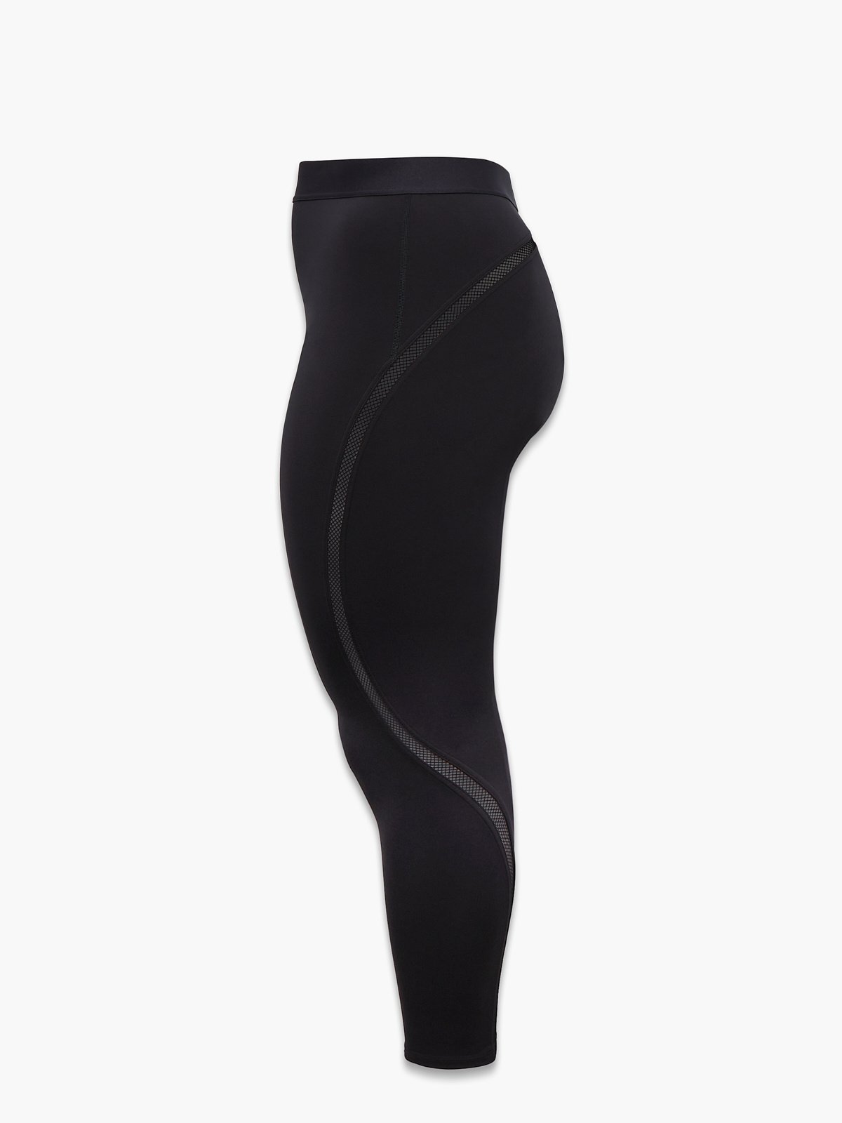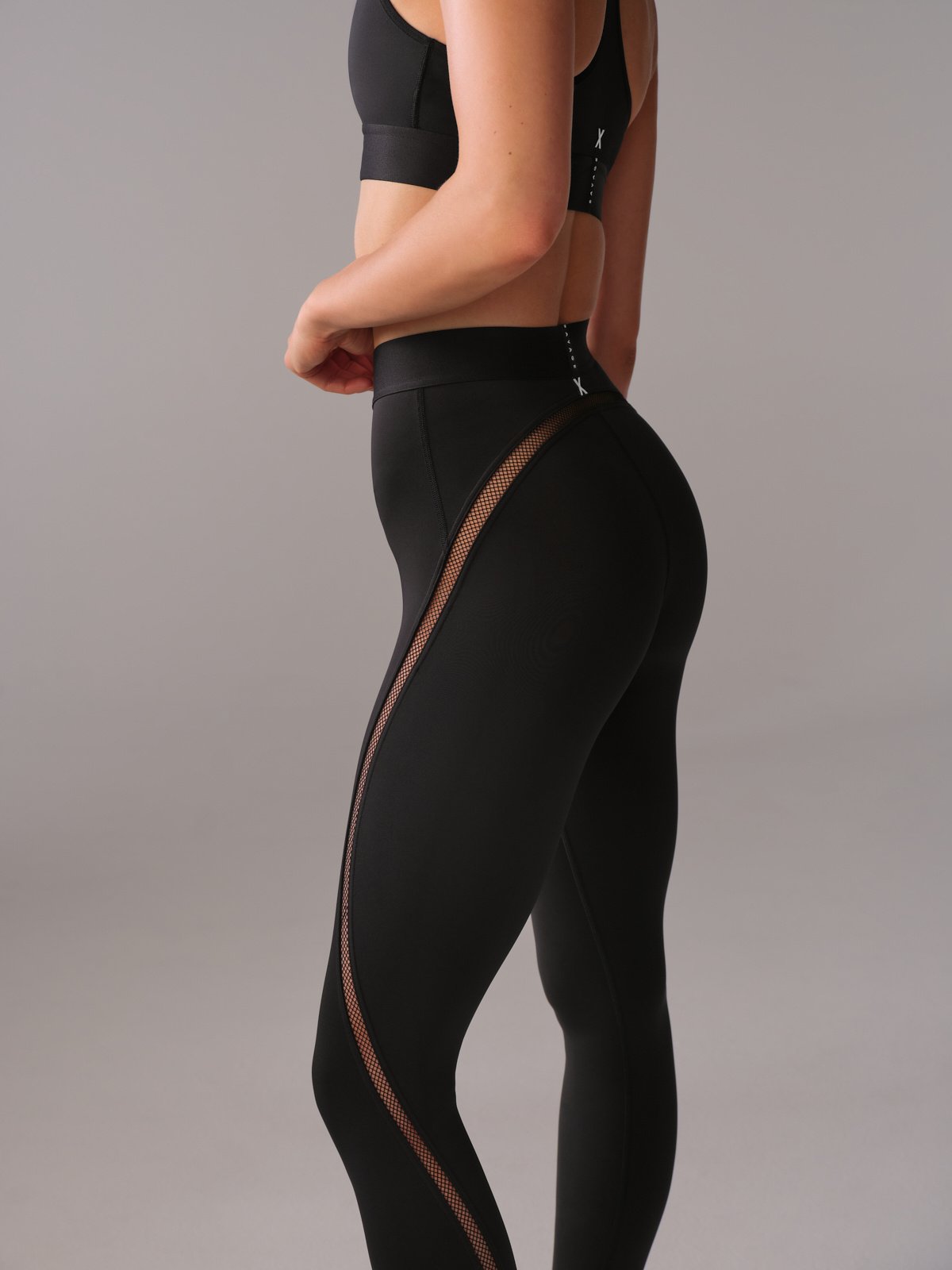 - Unlined, sheer netting elastic inset detail at curved back/leg seam