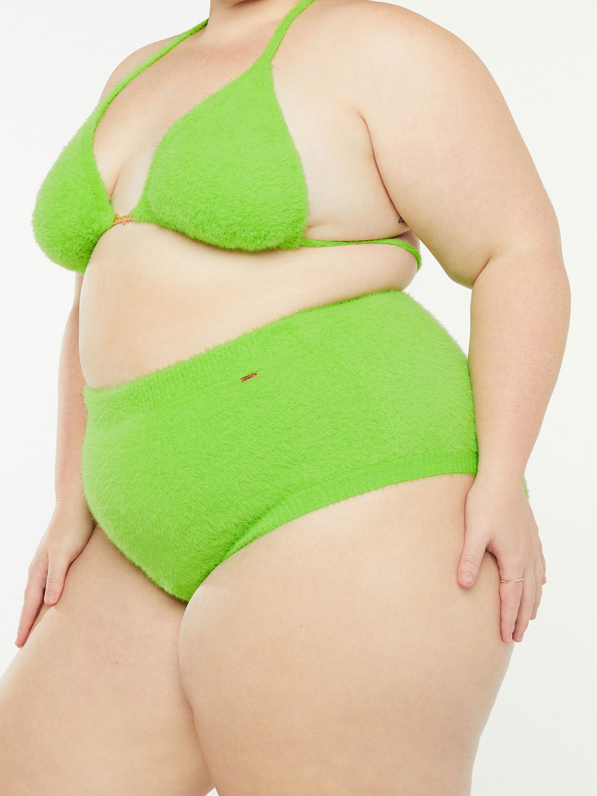 Slip into our Fluff It Up Booty Short. Featuring our all-new fluffy knit fabric, these shorts are for both lounging in and showing out. Pair with our Fluff It Up Bralette for the ultimate cozy, holiday vibe.