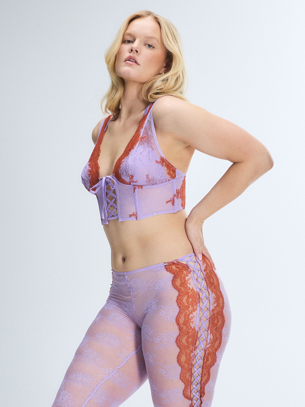 Make the moment linger in our Lacestruck Cami, featuring a lace silhouette and two eye-catching contrast hues, a functional halter tie, a sultry plunge neckline, and sexy lace-up details in front to draw their attention right where you want it. Note contrast lace placement varies by style.
