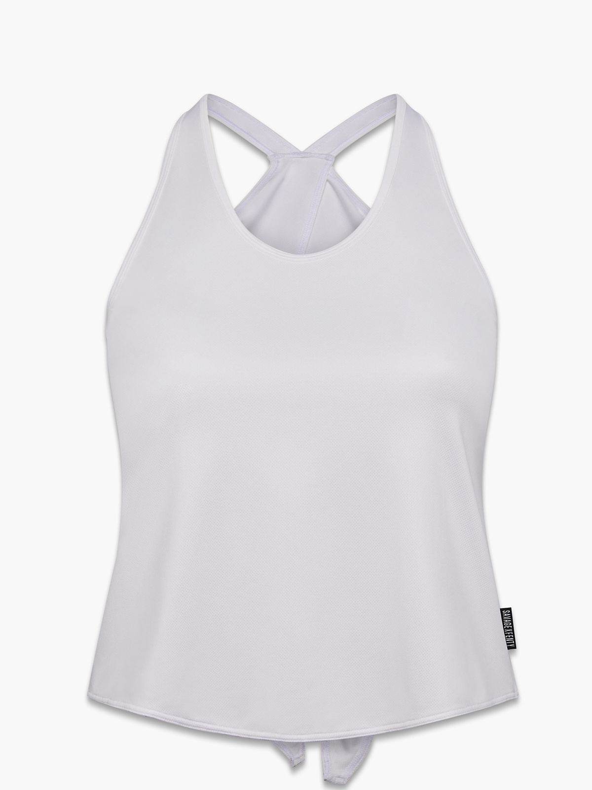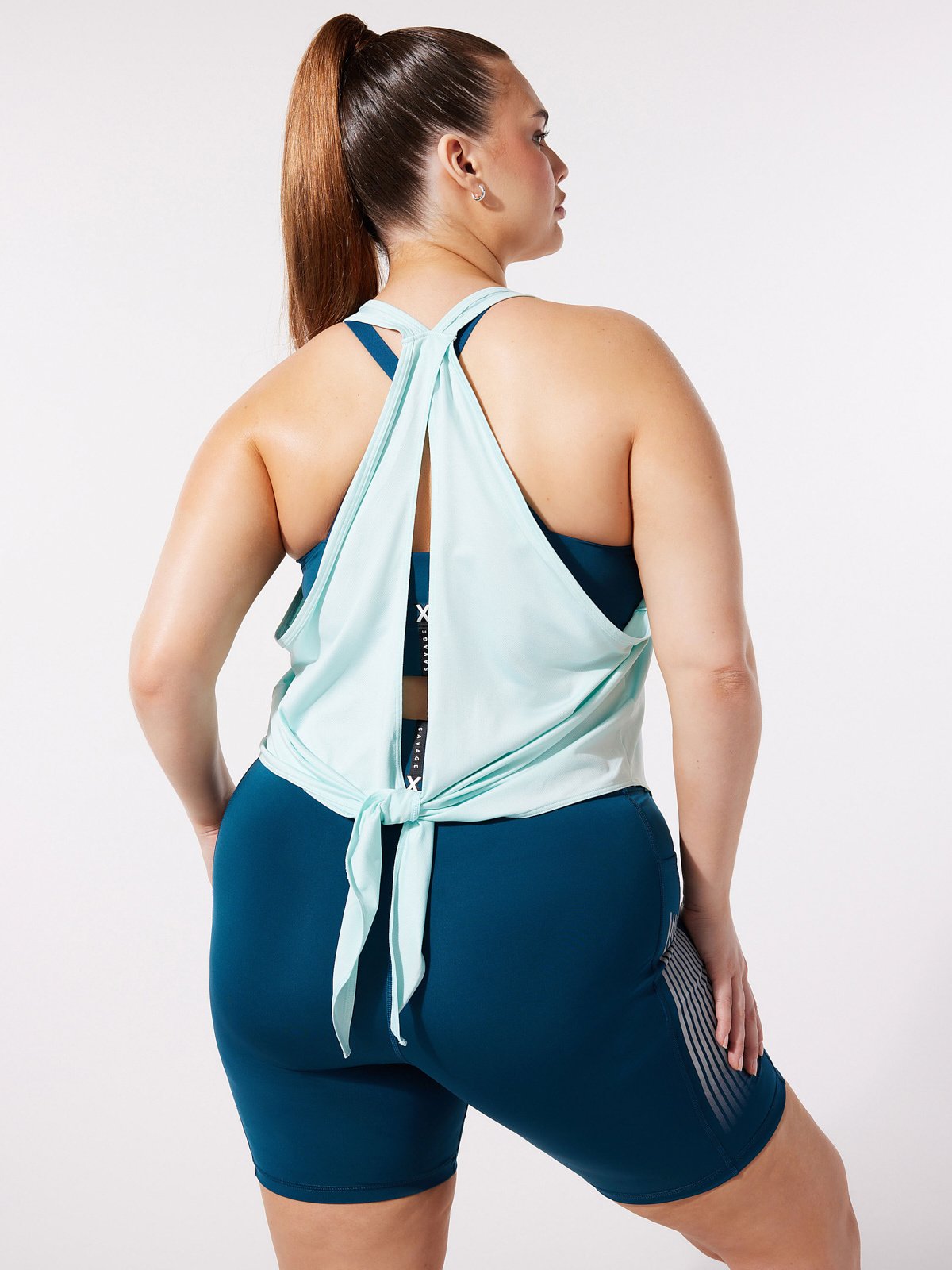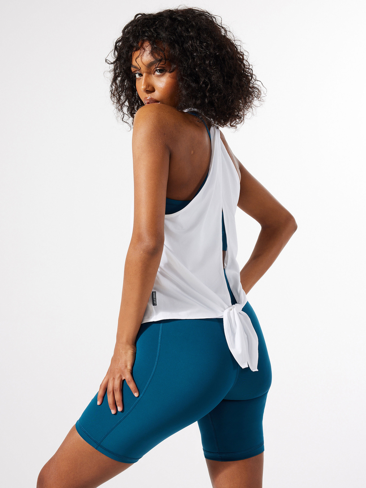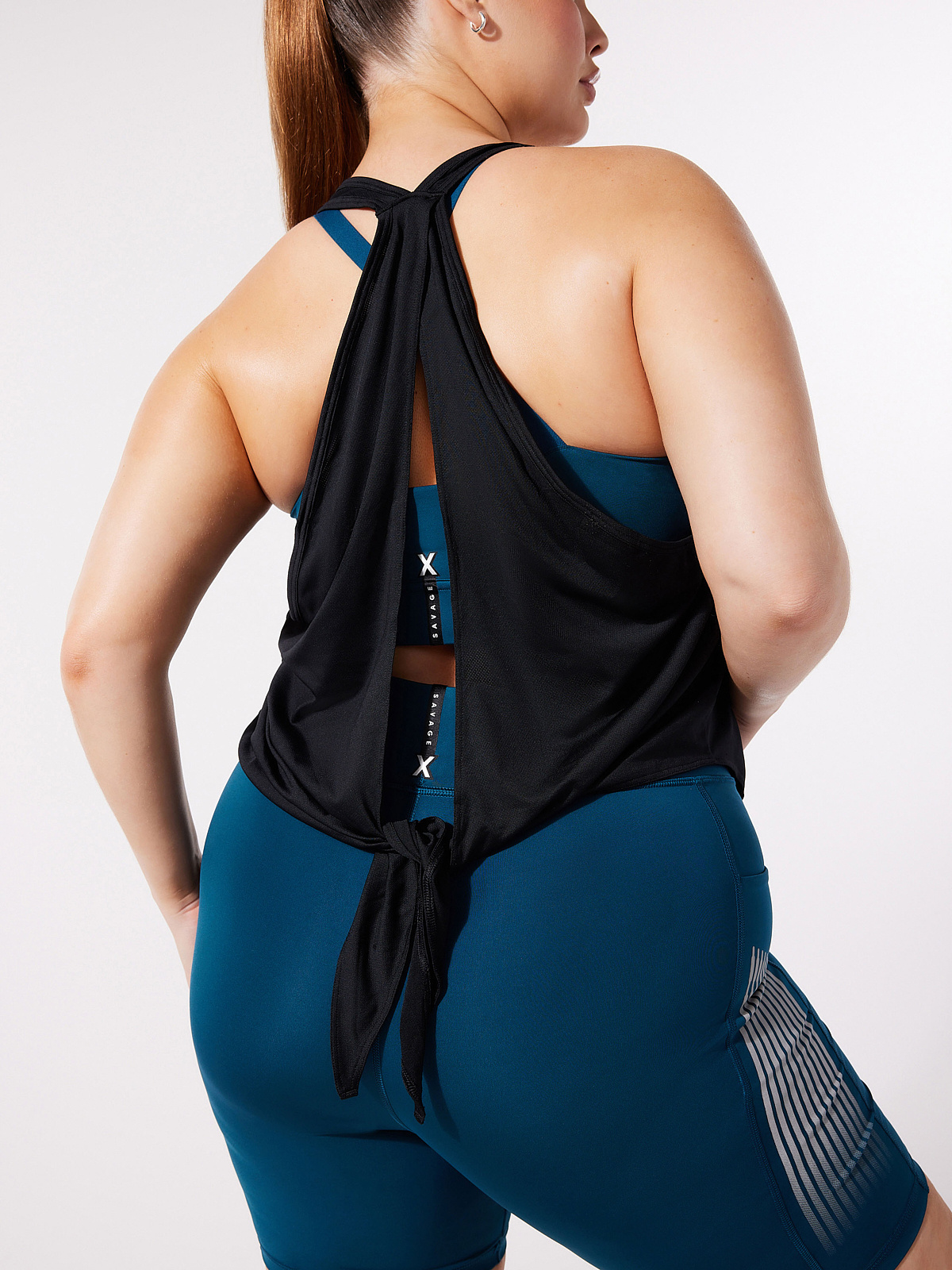 Our Light Layer Open-Back Tank features smooth jersey fabric, a keyhole cutout, and an adjustable tie at the lower back.