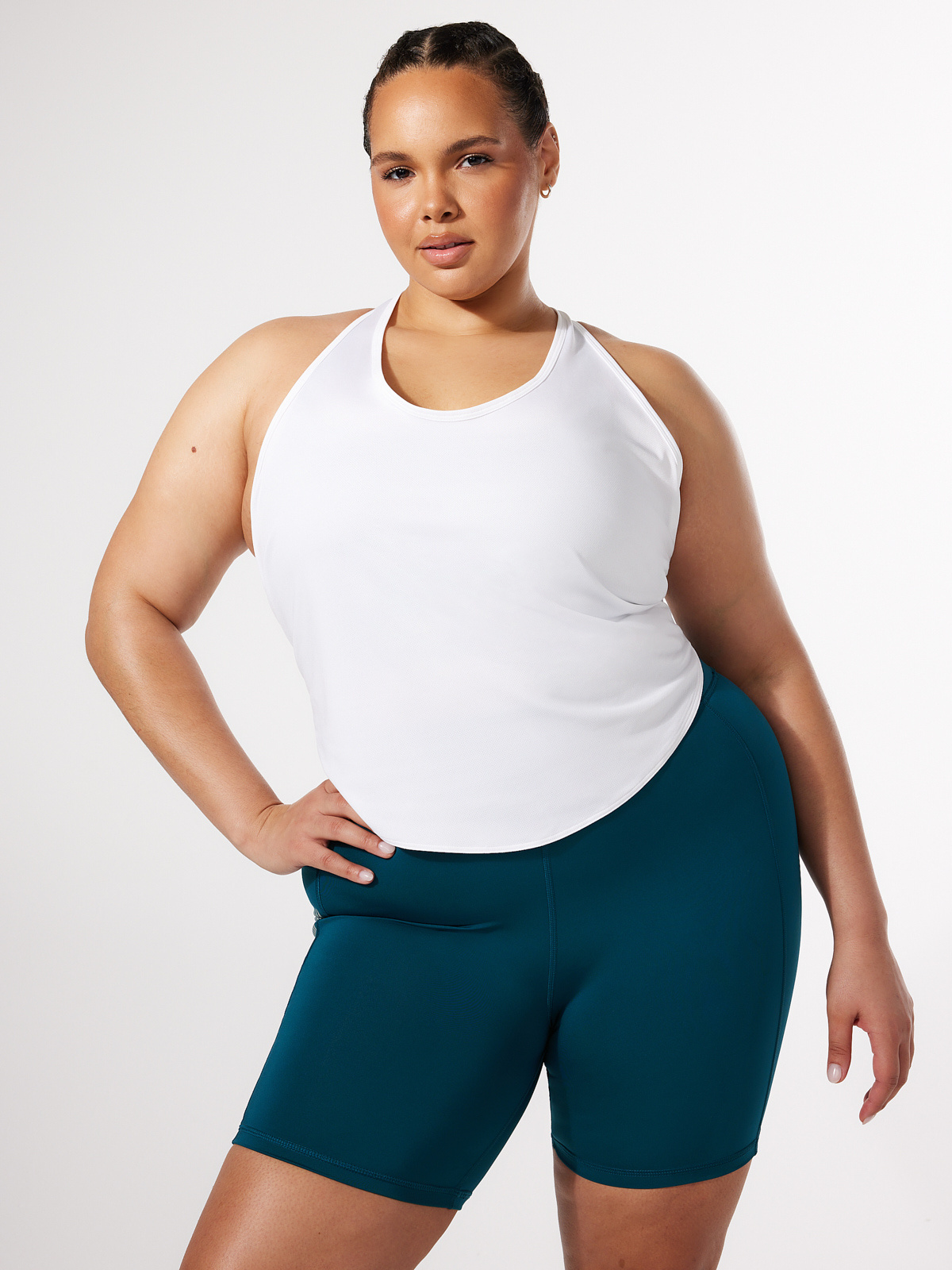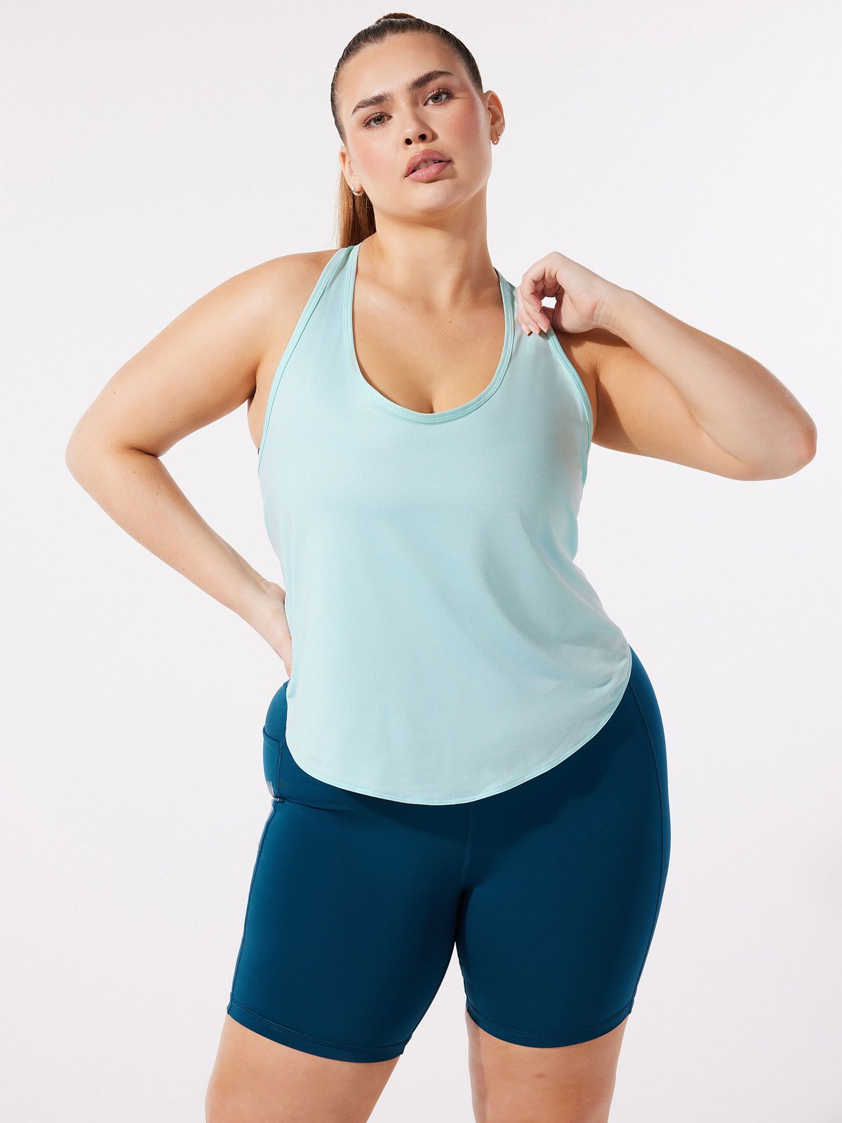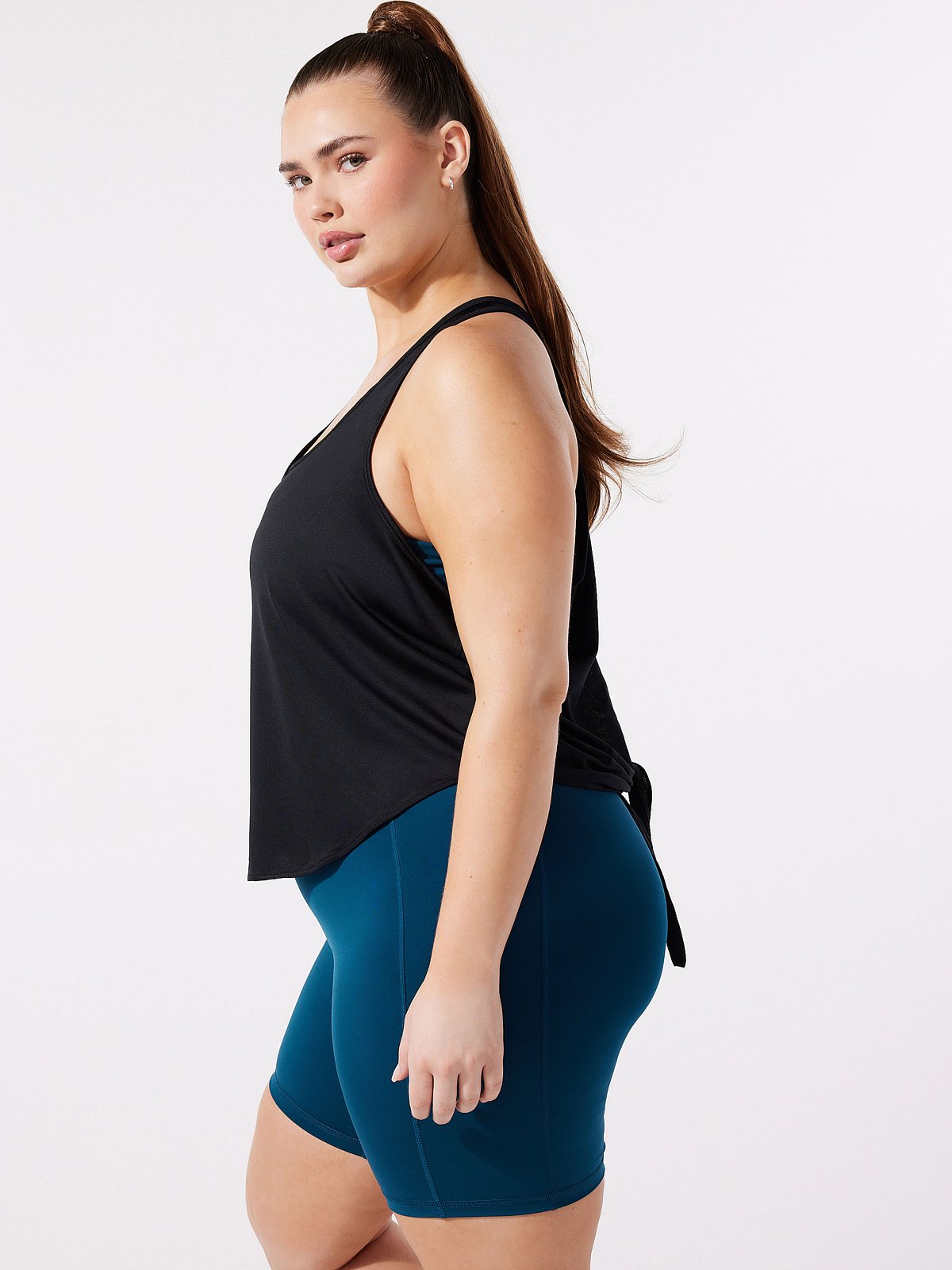 Our Light Layer Open-Back Tank features smooth jersey fabric, a keyhole cutout, and an adjustable tie at the lower back.