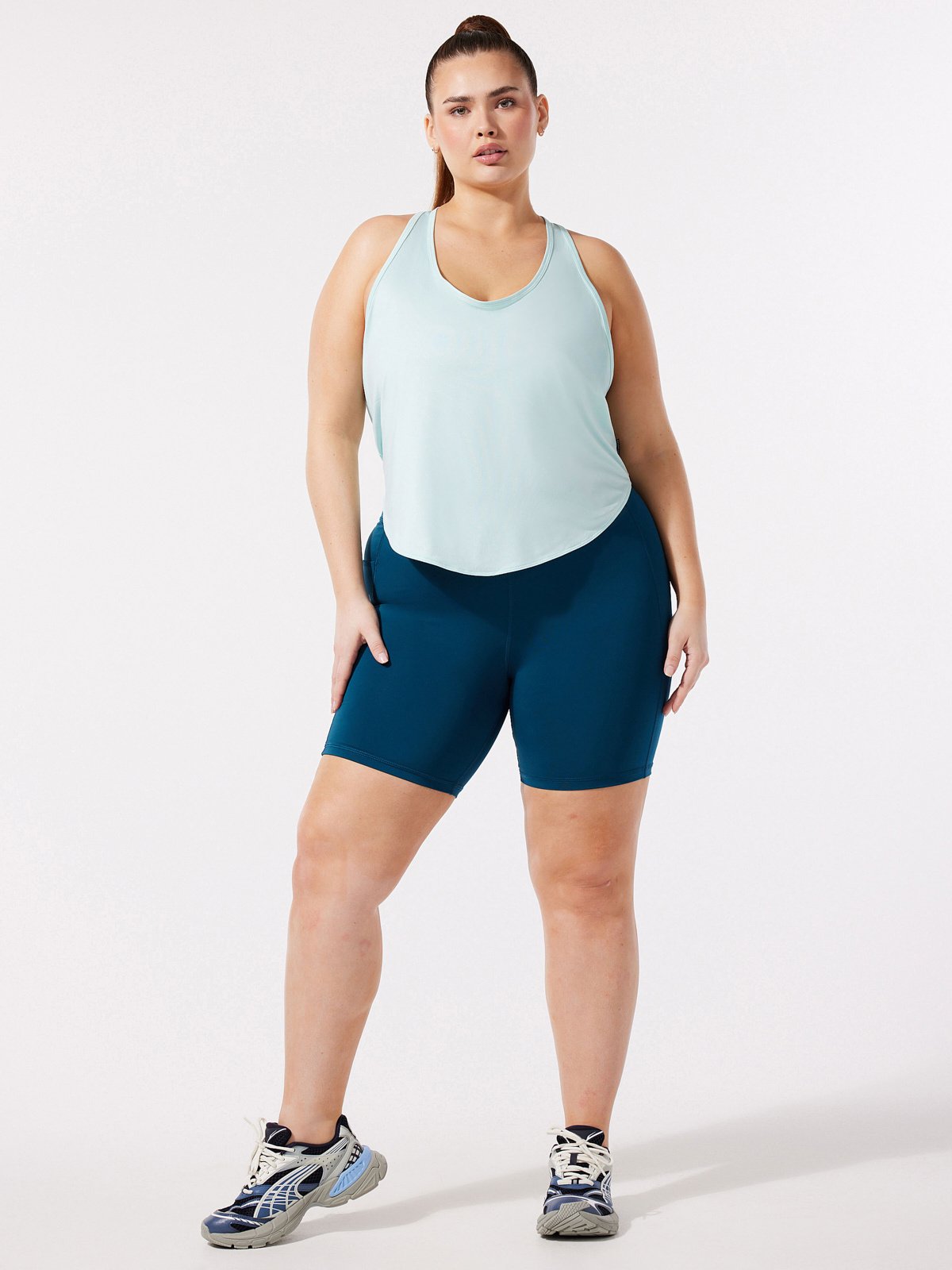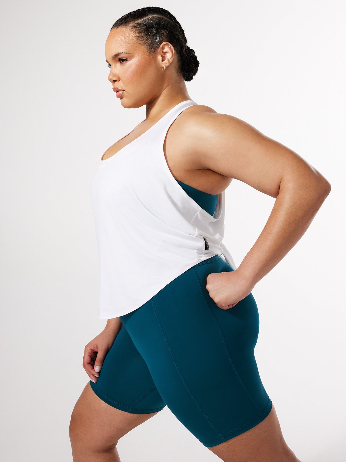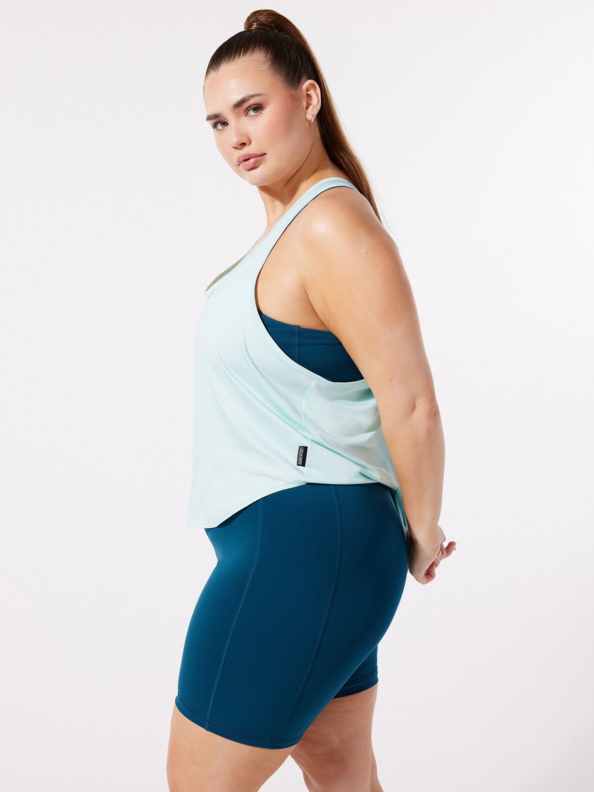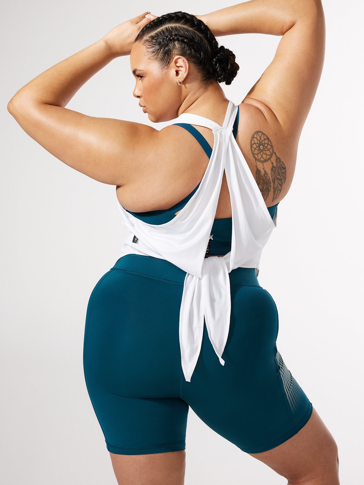 Our Light Layer Open-Back Tank features smooth jersey fabric, a keyhole cutout, and an adjustable tie at the lower back.