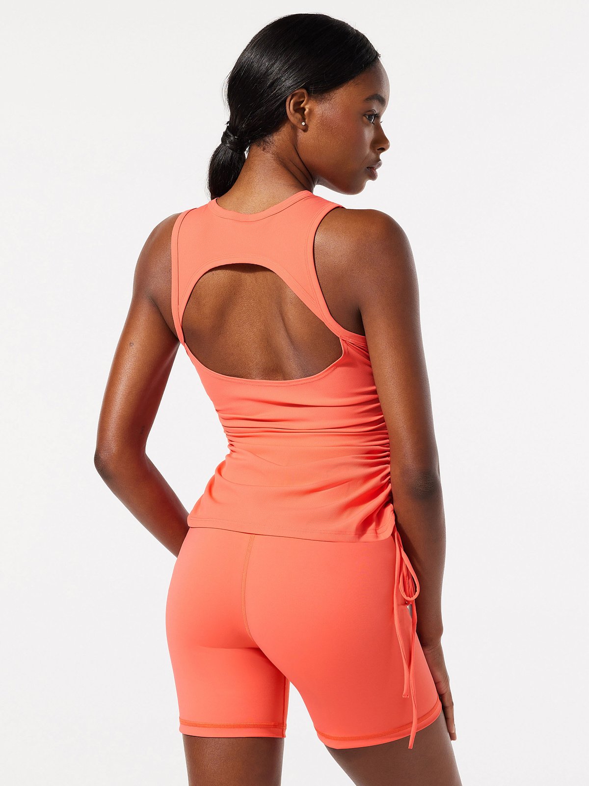 Stay cool all summer long in our Light Layer Ruched Tank, featuring a soft rib fabric, ruching at the sides, and a flirty keyhole cutout on the back.