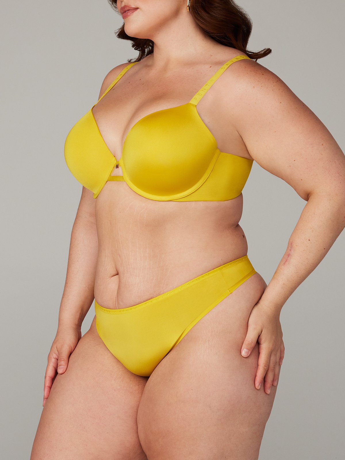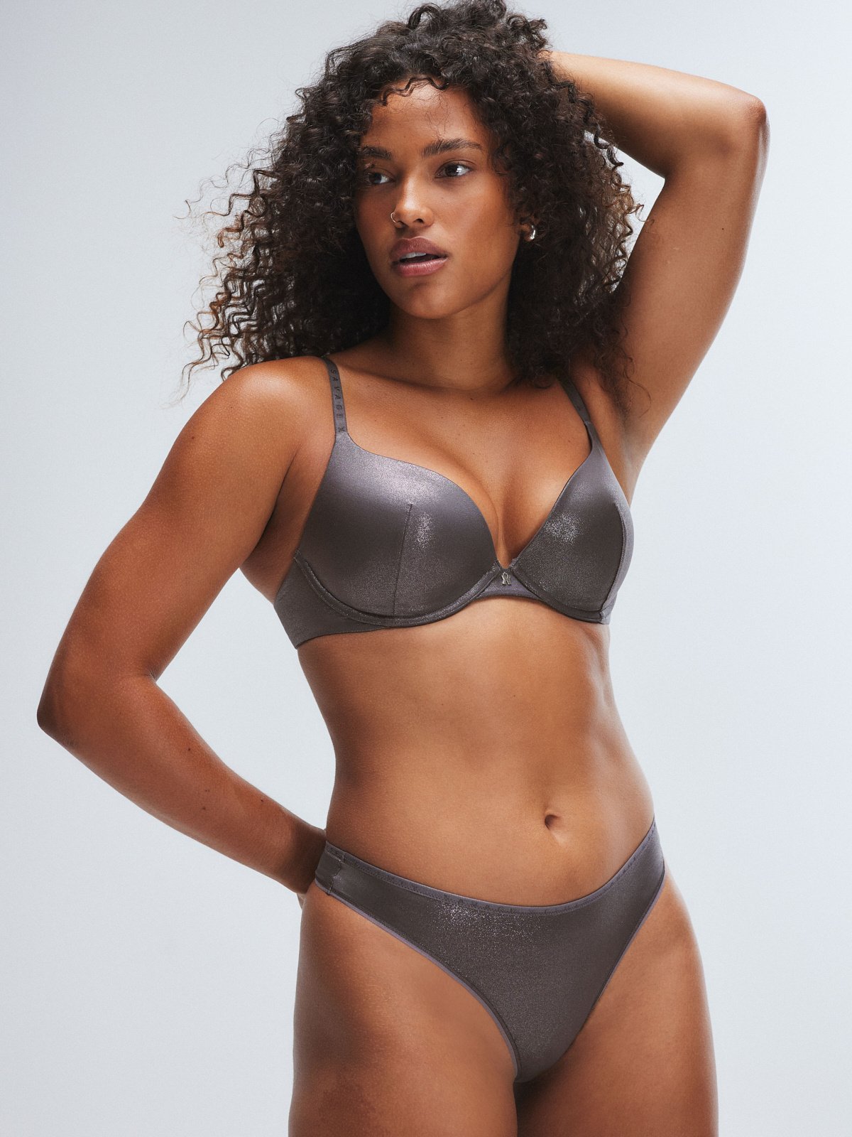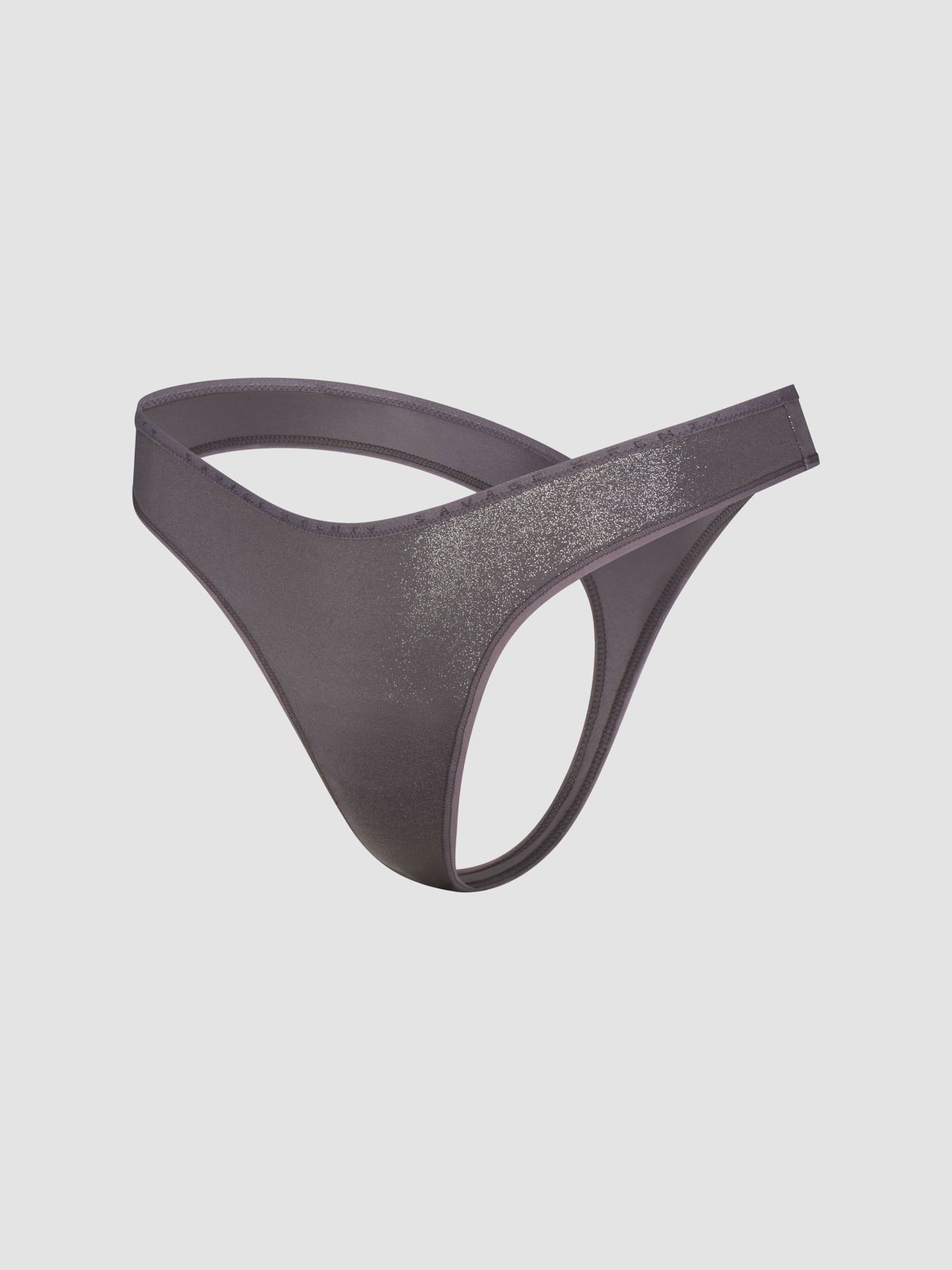With a smooth, cool-to-the-touch feel and a shimmering metallic finish, our Microfiber Metallic Thong Panty features a mid-rise silhouette and a logo-trim elastic waistband.