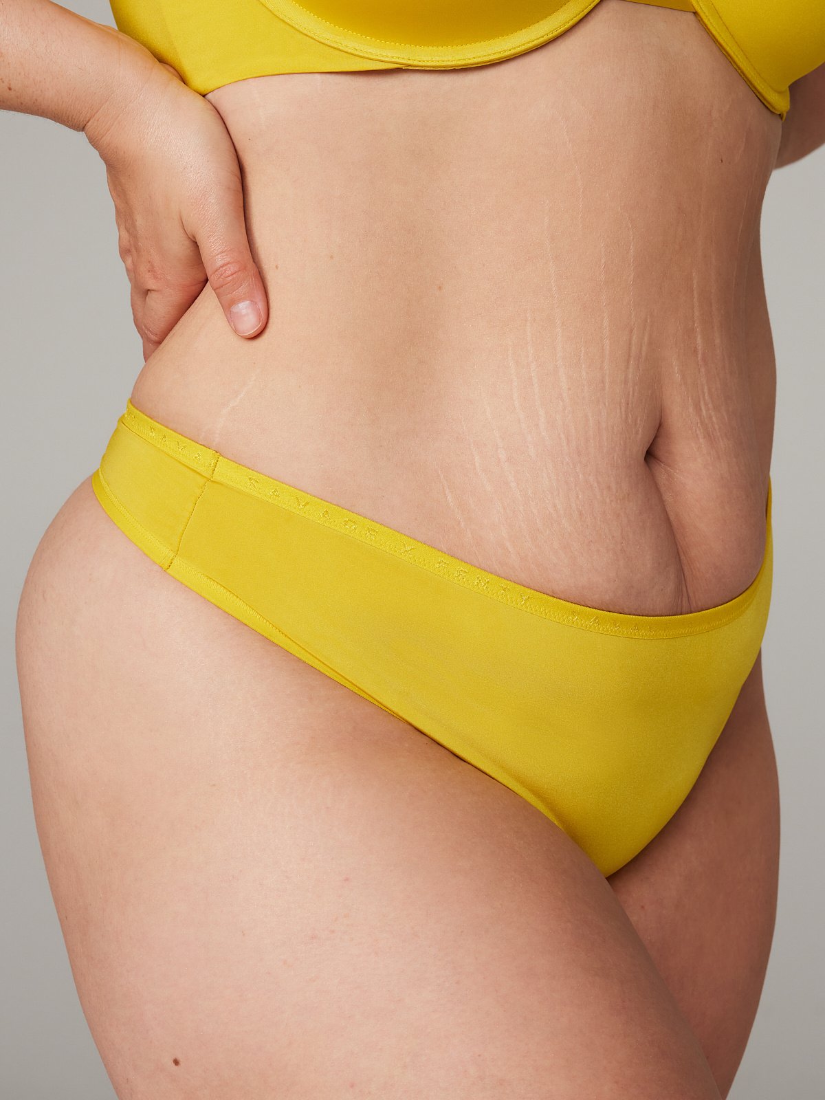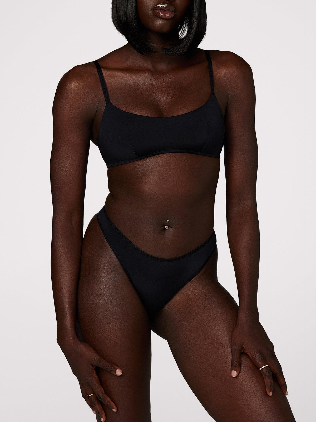 - Body: 75% Recycled Nylon, 25% Elastane; Gusset: 100% Cotton