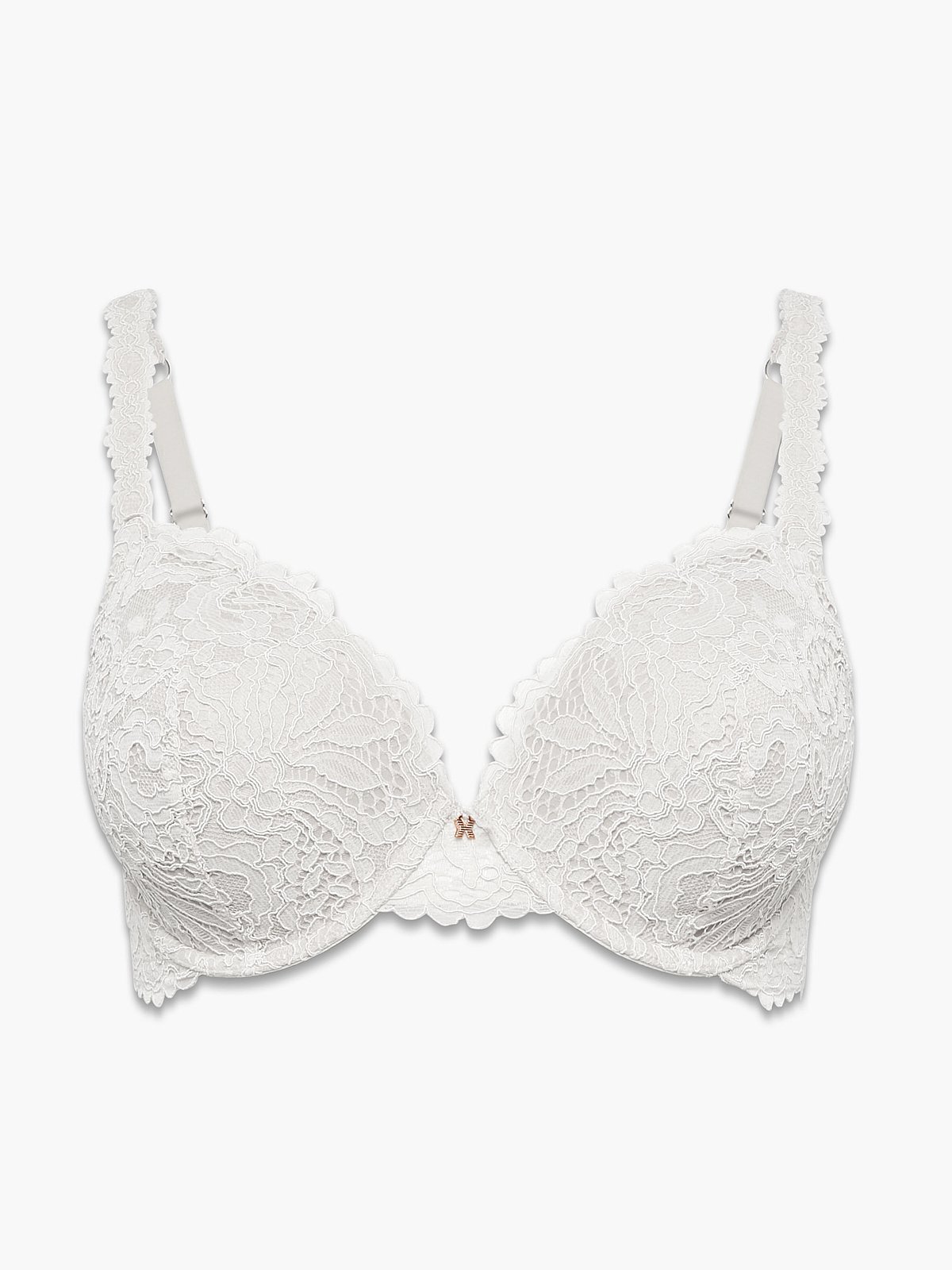 Made from soft, stretch corded lace with a hint of metallic shimmer, our Romantic Corded Lace Metallic Padded Demi Bra features padded demi cups and adjustable, supportive straps, adding comfort and support to this sexy bra silhouette.