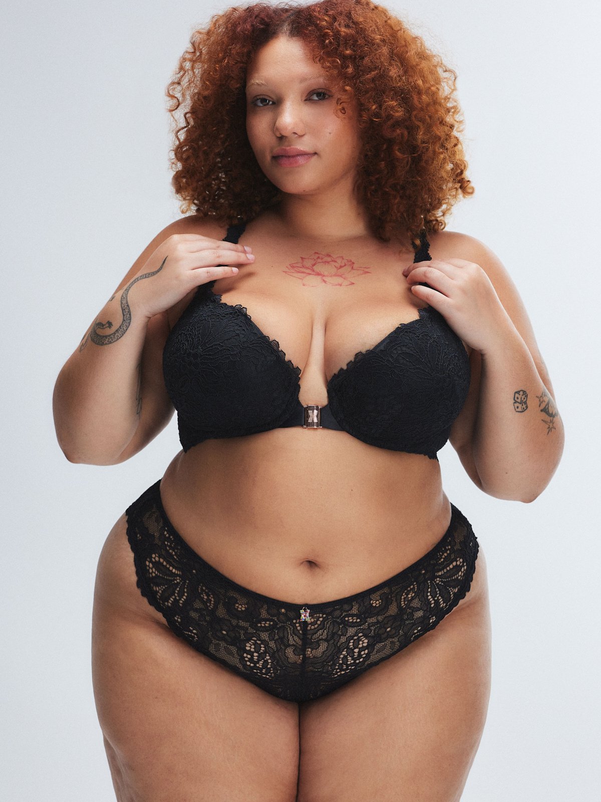 Our Romantic Corded Lace Push-Up Bra features a plunging neckline, curve-enhancing padded cups, and a front closure. The racerback wing is lined with power mesh, adding comfort and support to this ultra-sexy bra.