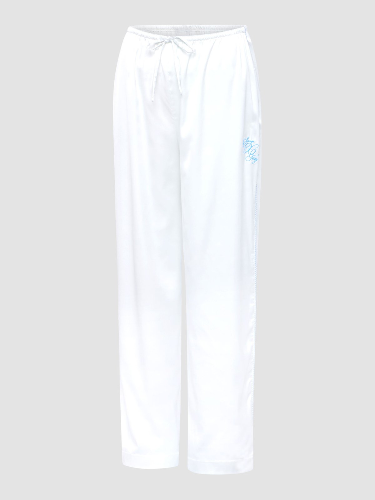 For the vow factor. Our Satin Ever After Sleep Pant features a matte stretch-satin silhouette with a relaxed fit and embroidered artwork.