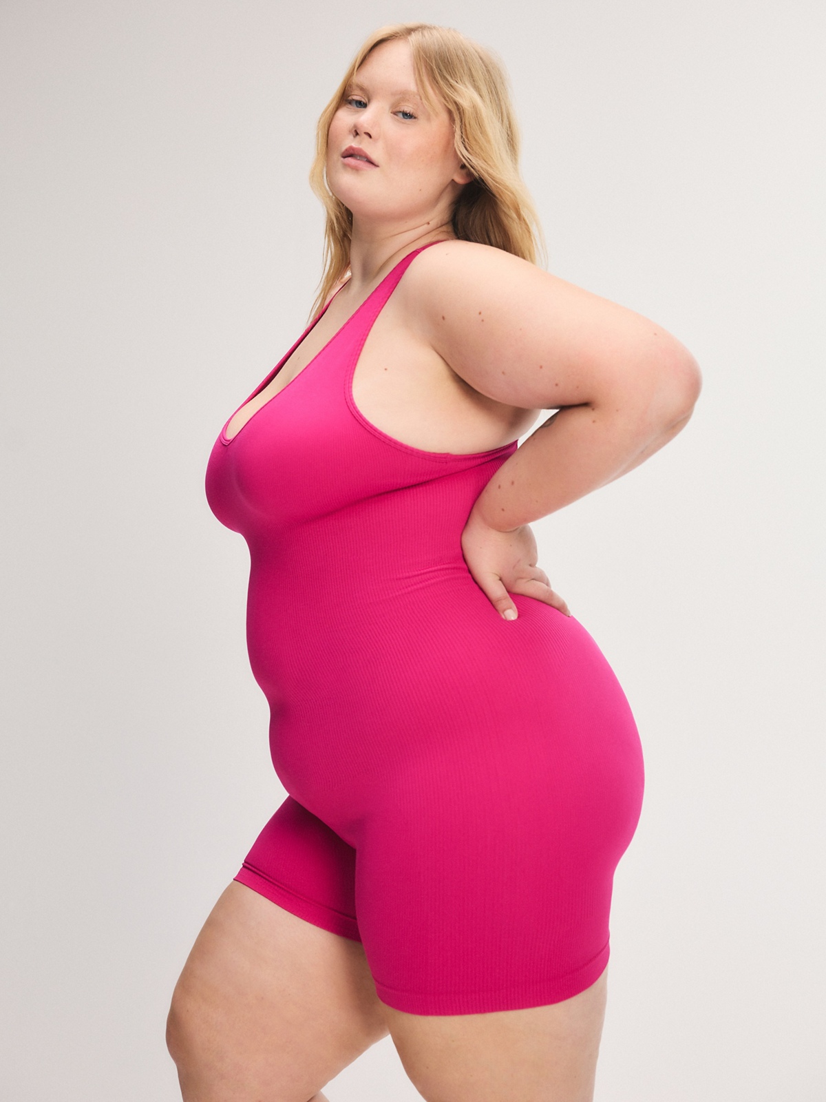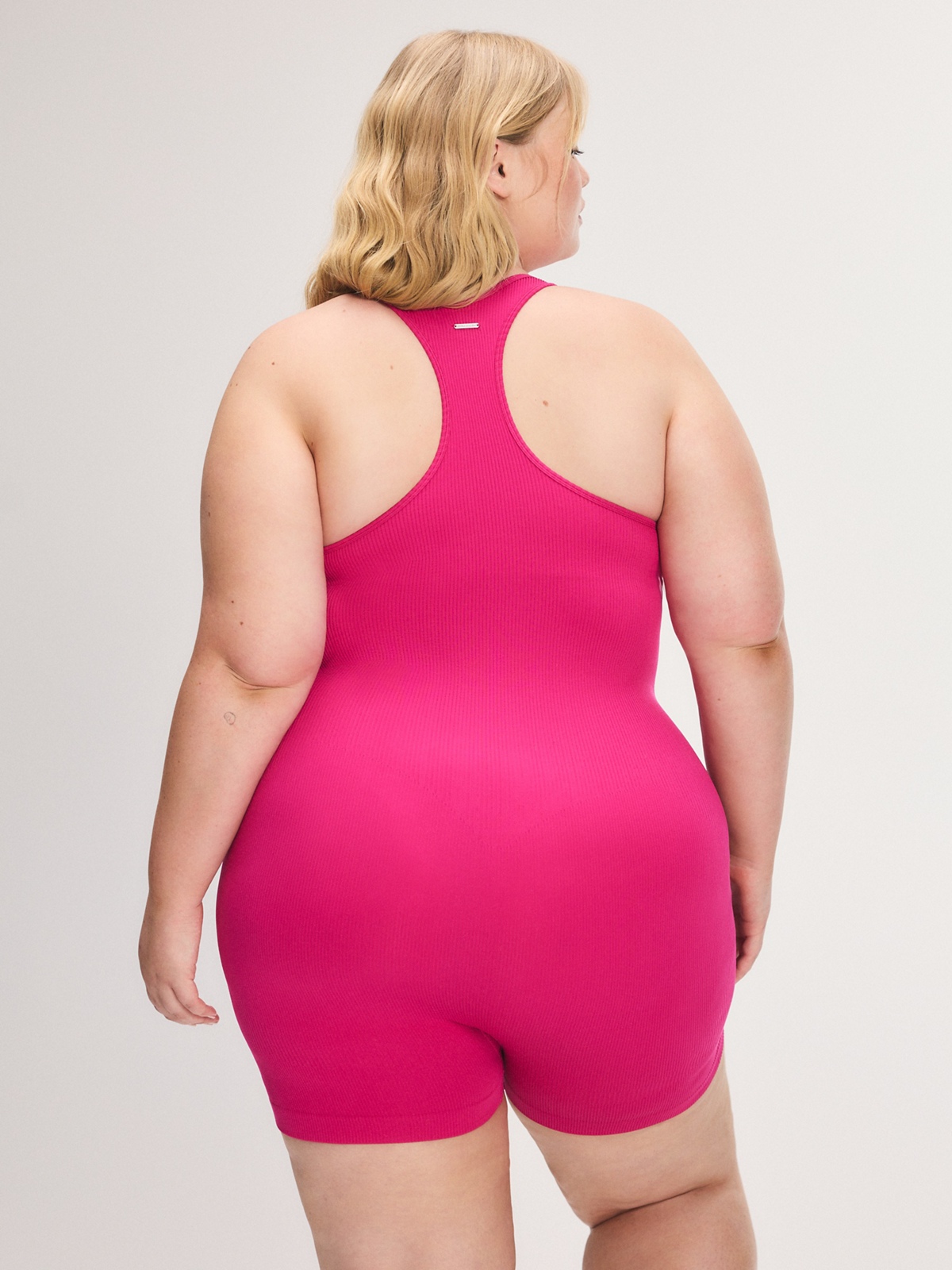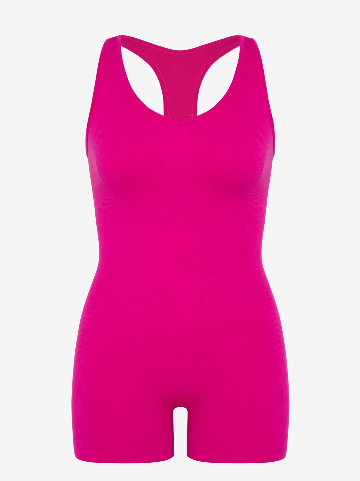 Our Seamless Sport Racerback Romper is made from a combination of smooth knit and soft ribbed fabric and has seamless construction for a smooth look. Complete with a built-in shelf bra and wide ribbed panels that support and shape the waist while lifting the butt.