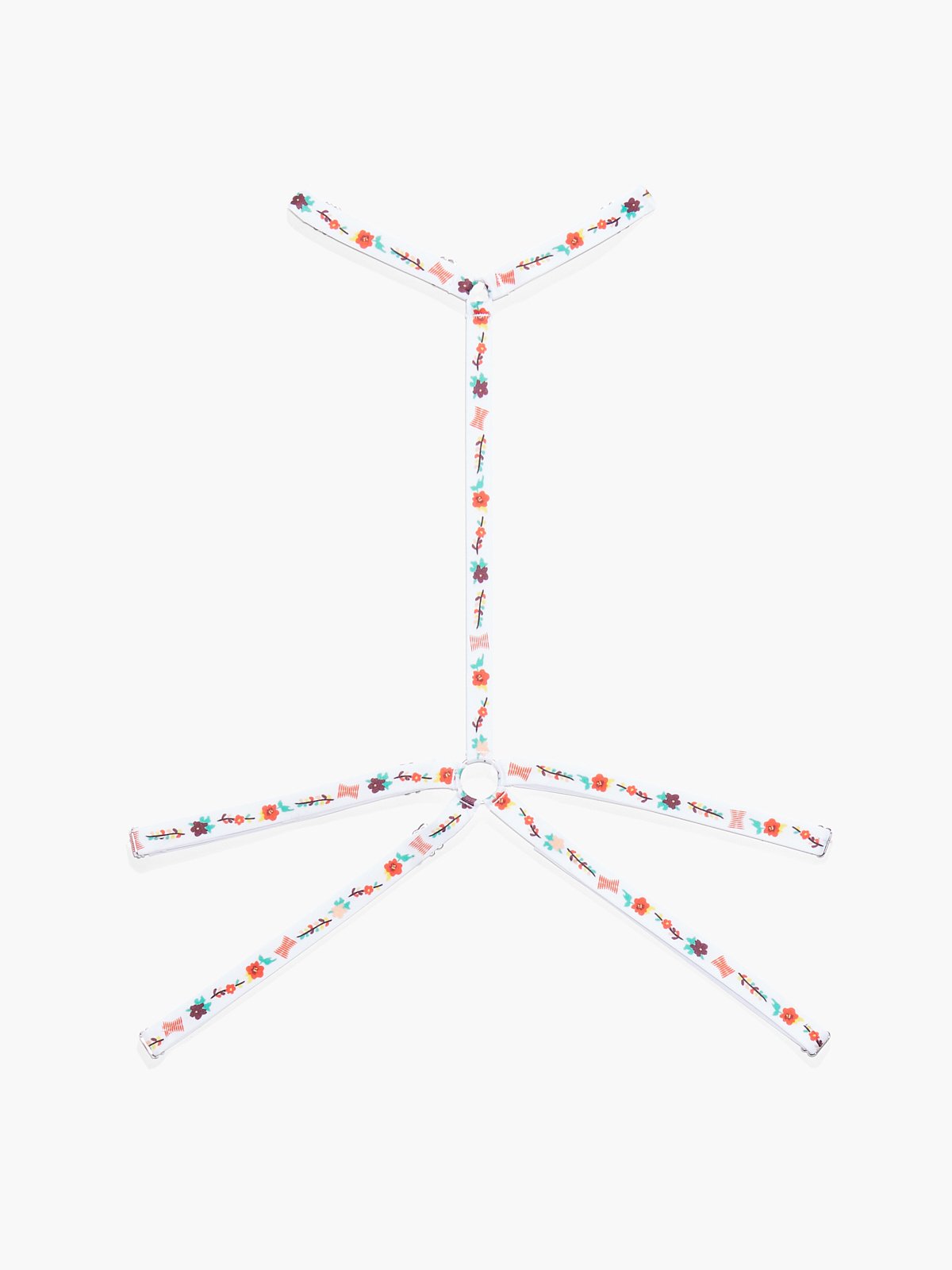 Bad behavior never looked so good. Our Secret Garden Body Harness features a ’60s-inspired floral-printed elastic body and rose gold-tone hardware