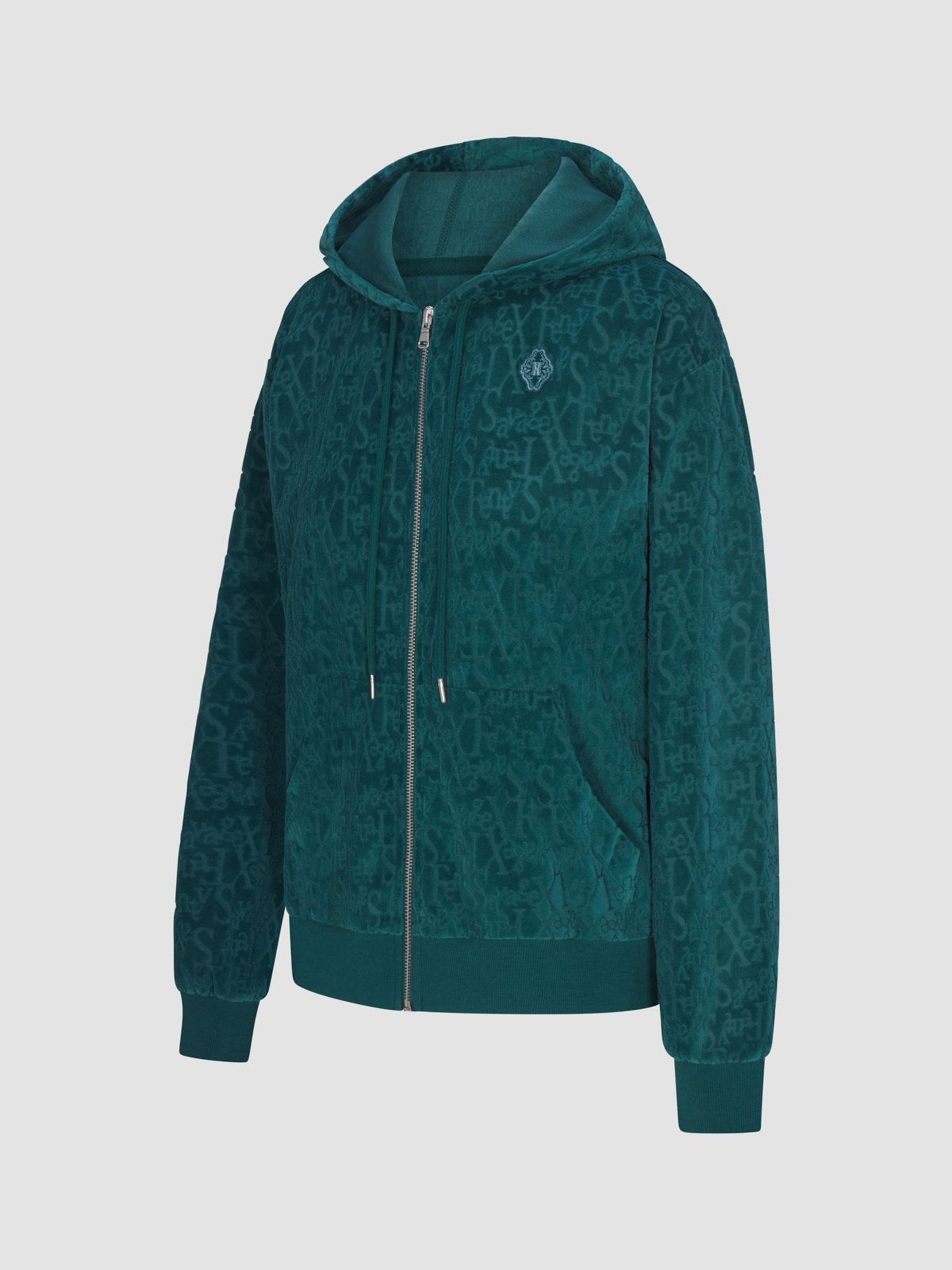 Our Signature Script Velour Zip-Up Hoodie is made from an ultra-soft logo-velour fabric and features a front kangaroo pocket and an embroidered logo patch at the front chest.