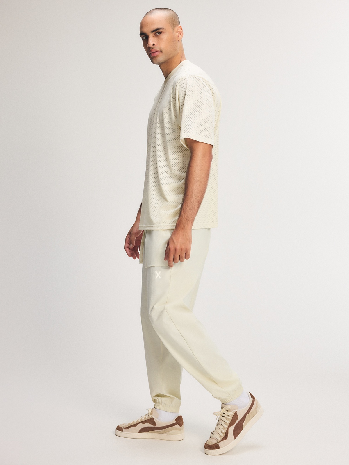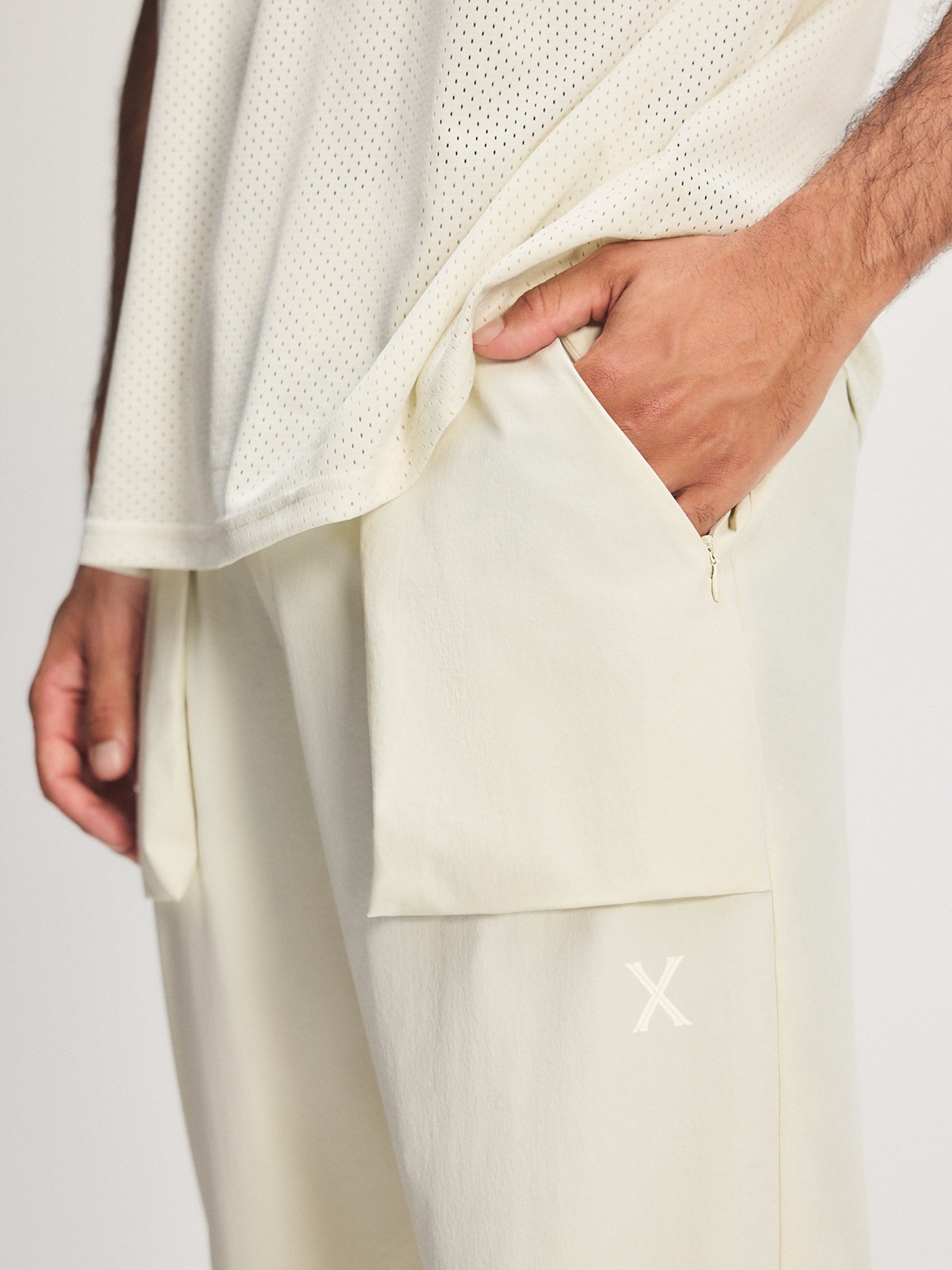 - Pad print “X” logo at front left leg