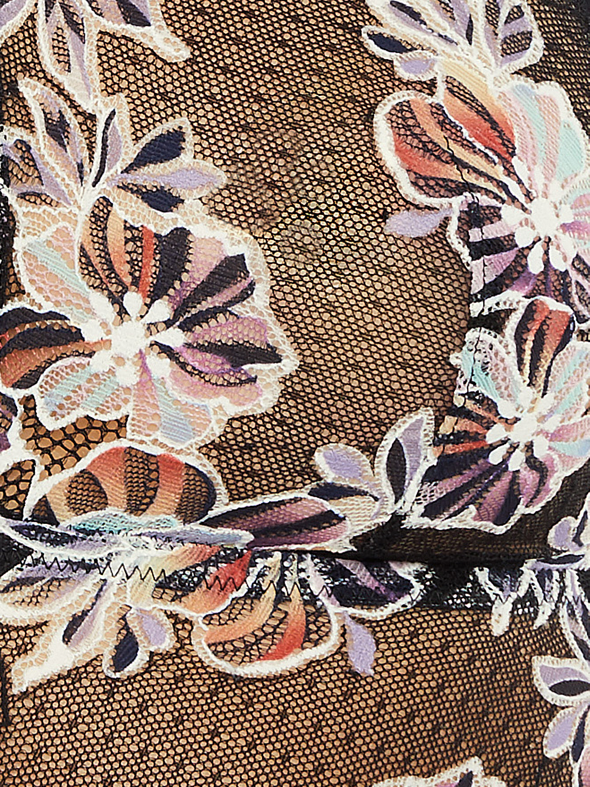 • Xclusive chevron-edge stretch lace design with custom floral print